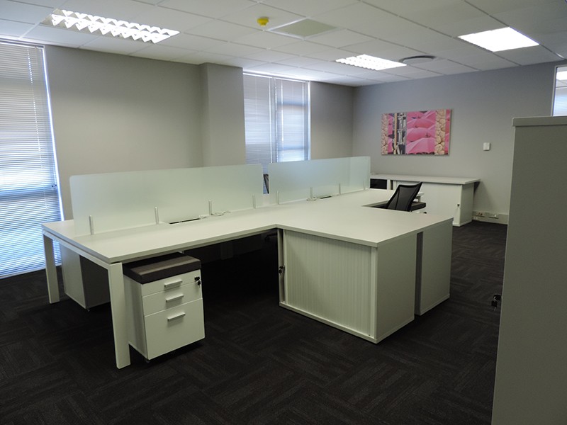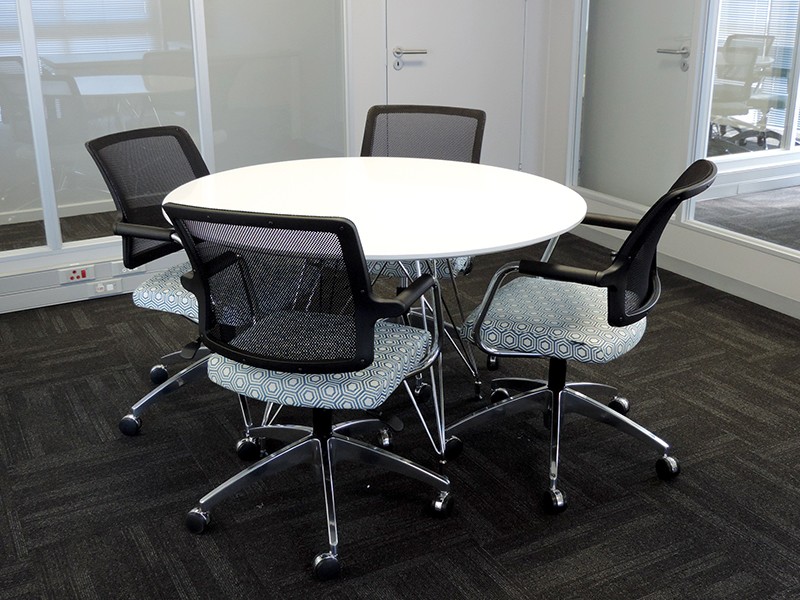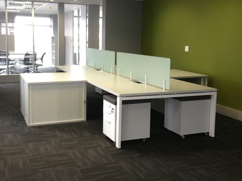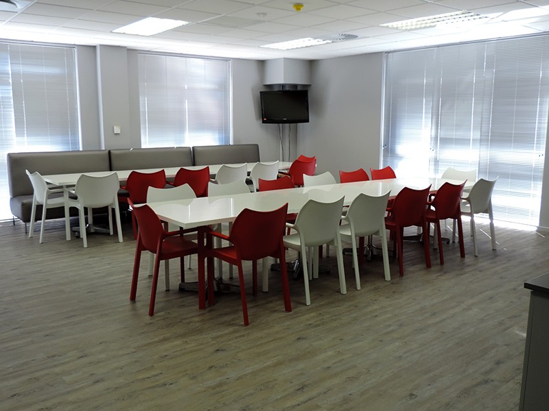 Urban World was appointed to supply modern, functional furniture for this global reinsurance company, in keeping with their London offices. Large workstations with plenty of storage was required in the open plan offices without blocking the Waterfront vista. To assist with this, floating frosted glass desk-top screens were used to maximise natural light whilst demarcating personal space. Storage modules had bright upholstered fabric panels added to contrast with the neutral tones of the furniture and cushioned pedestals were introduced at the workstations to double up as visitors' chairs. Flexibility was a key requirement for all meeting, training and boardrooms and multi-purpose, mobile tables with folding tops were selected to fulfill this part of the brief.